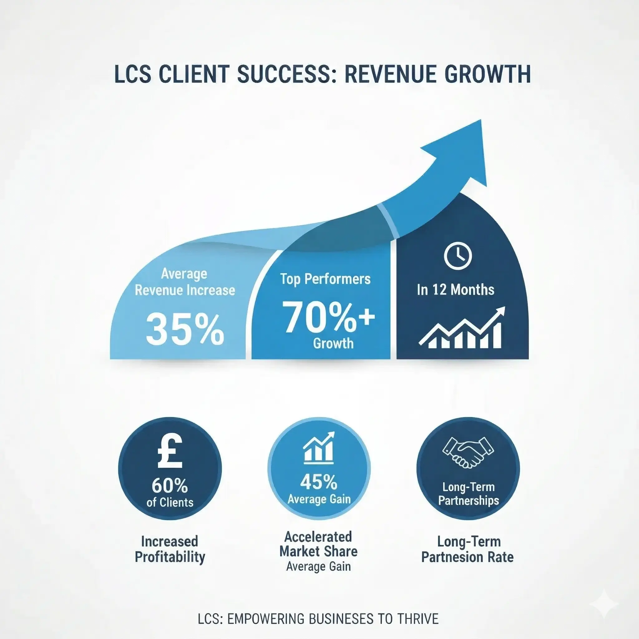 At LCS, our team of revenue growth experts have helped numerous SME clients achieve over £250K in additional revenue through our tailored coaching programs. By collaborating closely with you to develop a strategic, data-driven growth plan, we can help you unlock your business’s full revenue-generating capabilities.
